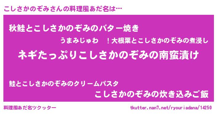 | 男性向けラノベタイトル風あだ名 | 『コシサカノゾミアートオンライン』 |
