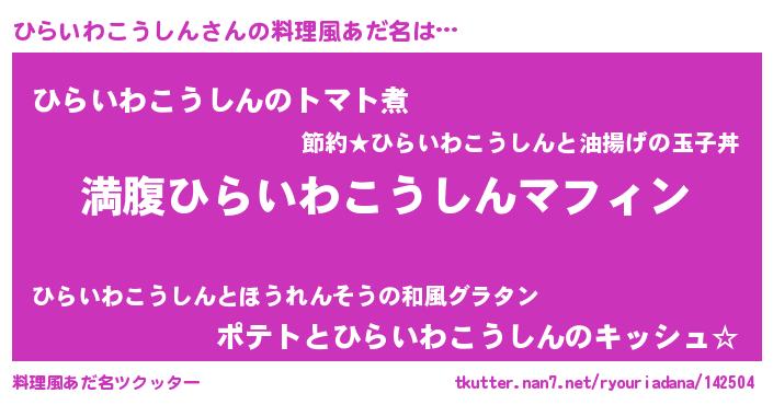 | 男性向けラノベタイトル風あだ名 | 『ひらいわこうしんという概念が存在しない退屈な世界 』 |