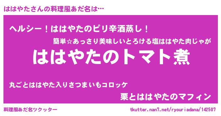 | ヘコむあだ名 | 『ははやた(苦笑)』『ははっ子』 |