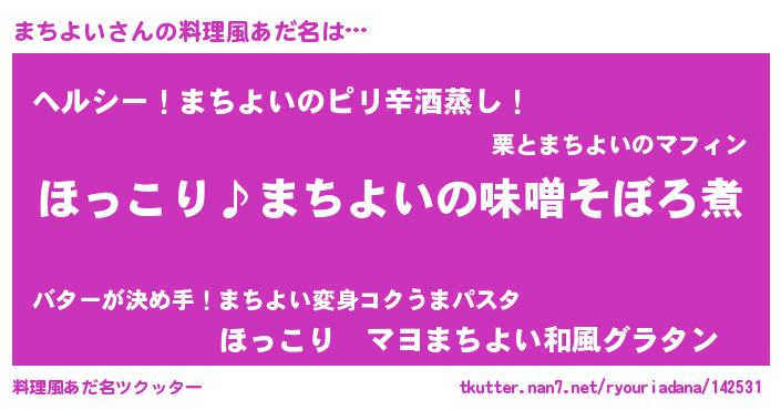| 意味不明あだ名 | 『ペロリンまちよい』『自称まちよい』 |