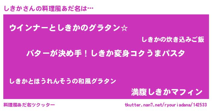 | 女子向けラノベタイトル風あだ名 | 『しきか恋絵巻』『しきか伯爵の花嫁』 |