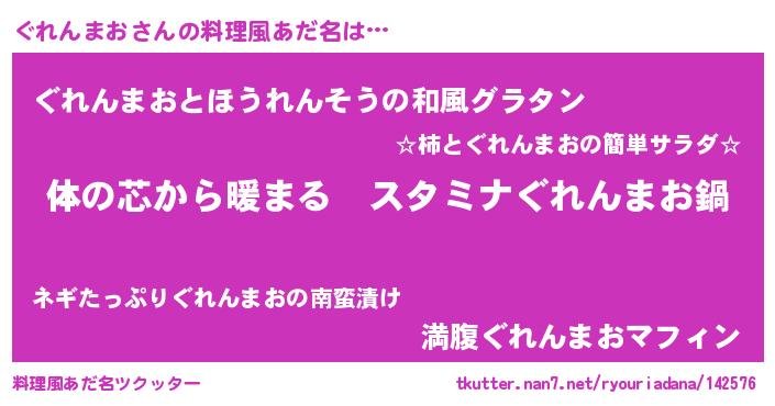 | 女子向けラノベタイトル風あだ名 | 『ぐれんまおの雑貨屋さん』 |