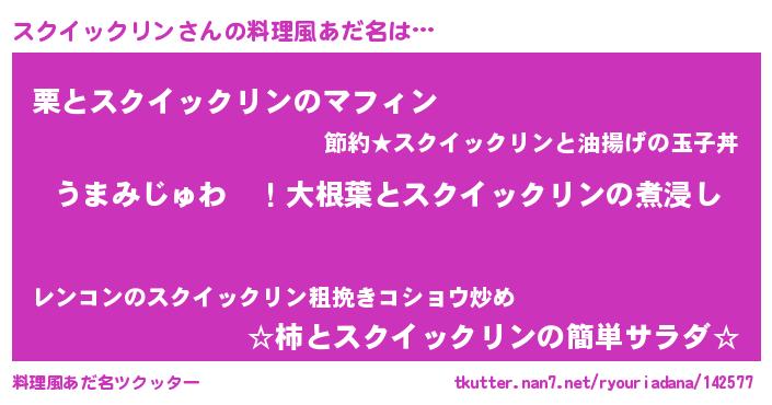 | 女子向けラノベタイトル風あだ名 | 『スクイックリンの婚約者』 |