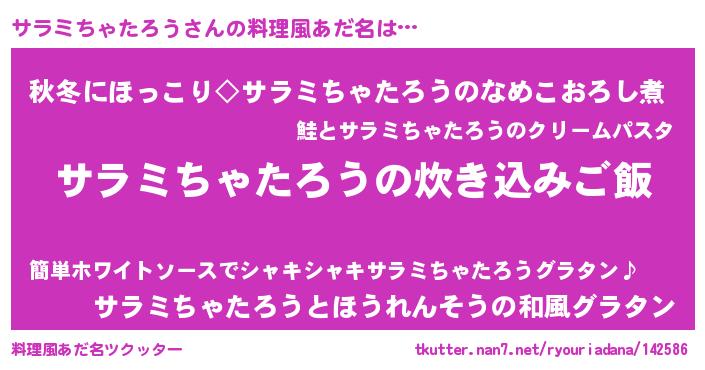 | 意味不明あだ名 | 『ヨモギ科サラミちゃたろう属』 |