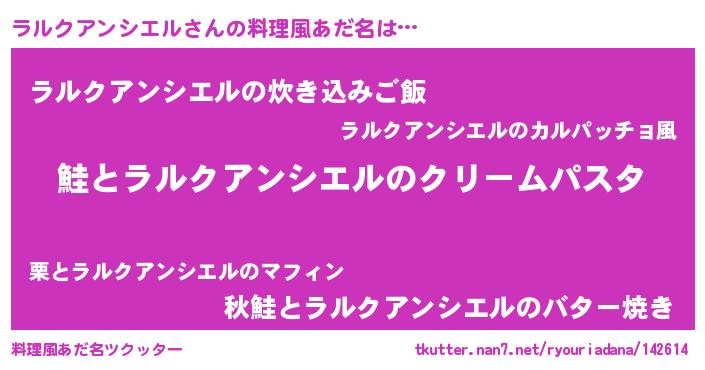 | 男性向けラノベタイトル風あだ名 | 『ノーゲーム・ノーラルクアンシエル』 |