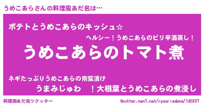 | 欧米人風あだ名 | 『ダニエルうめこあら』 |