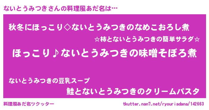 | 女子向けラノベタイトル風あだ名 | 『(仮)ないとうみつきのやんごとなき事情』 |