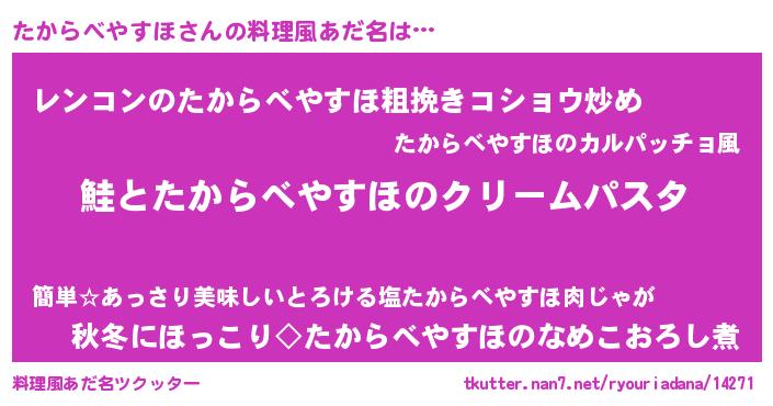 | ヘコむあだ名 | 『たからべやすほ(遠い目)』『たかっふぃ~』 |