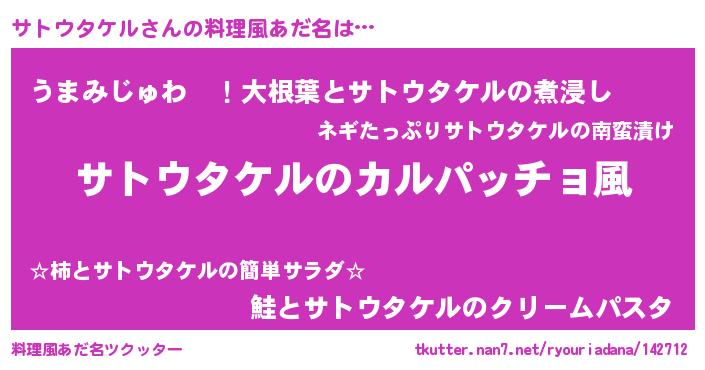 | 意味不明あだ名 | 『住所不定無職サトウタケル(85歳)』 |