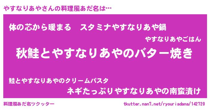 | 男性向けラノベタイトル風あだ名 | 『やすなりあやという概念が存在しない退屈な世界 』 |