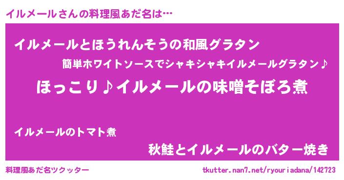 | 男性向けラノベタイトル風あだ名 | 『イルメールの憂鬱』 |