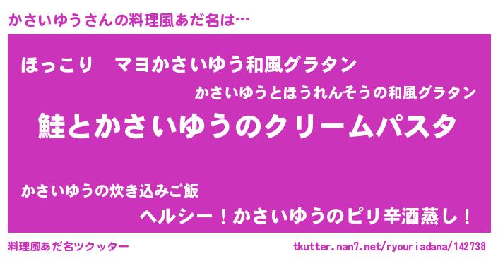| 女子向けラノベタイトル風あだ名 | 『死神かさいゆうの再婚』 |