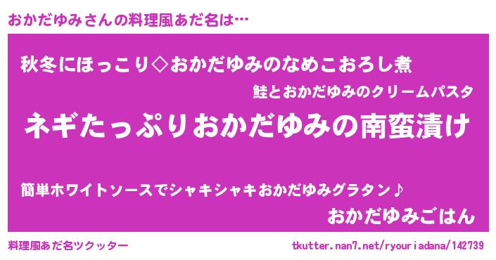 | 胡散臭い通販商品みたいなあだ名 | 『億万長者になれる水晶球…その名も「おかだゆみ」』 |