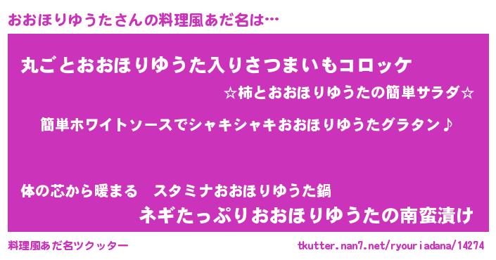 | 胡散臭い通販商品みたいなあだ名 | 『全米が絶賛したサプリメント…その名も「おおほりゆうた」』 |