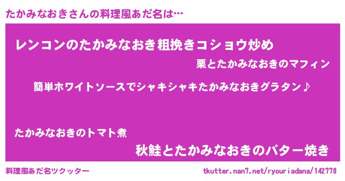 | 男性向けラノベタイトル風あだ名 | 『たかみなおきの嫁は女の子じゃないと思った?』 |