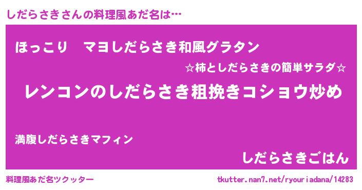| 女子向けラノベタイトル風あだ名 | 『しだらさきなんてお断りですっ。』 |