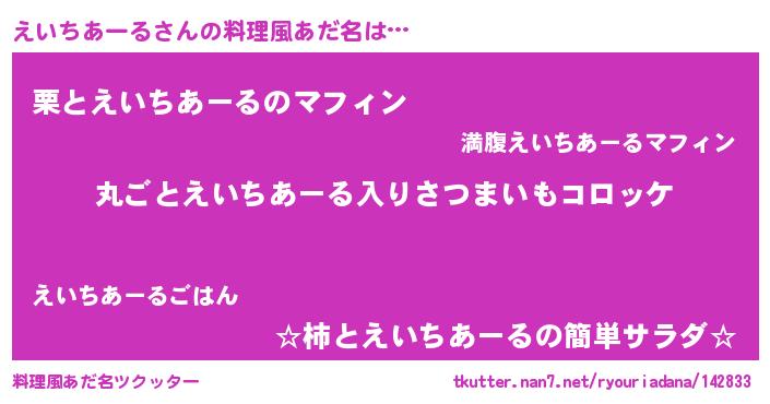 | 意味不明あだ名 | 『住所不定無職えいちあーる(13歳)』 |