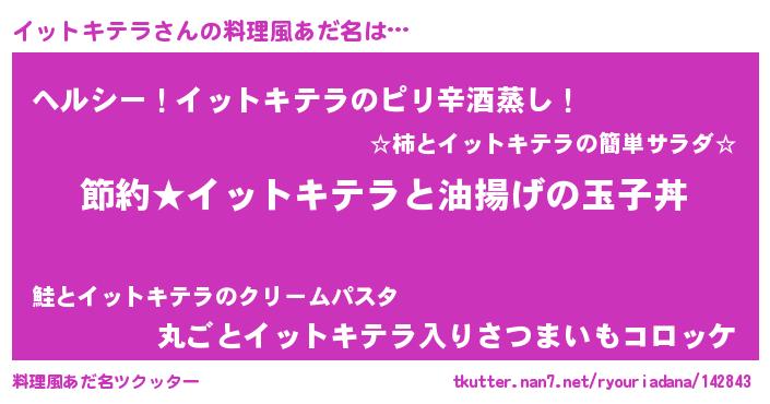 | 男性向けラノベタイトル風あだ名 | 『イットキテラアートオンライン』 |