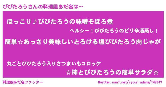 | 女子向けラノベタイトル風あだ名 | 『異世界でカフェびびたろうを開店しました。』 |