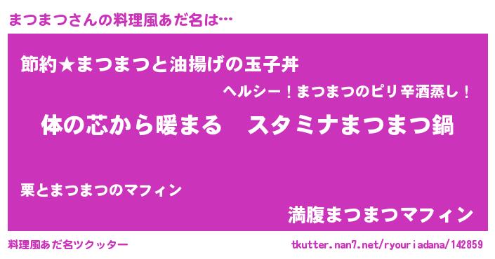 | ファンタジー風あだ名 | 『エターナルマツマツー』『マツフェル』 |