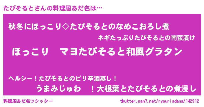 | 男性向けラノベタイトル風あだ名 | 『この素晴らしい世界にたぴそるとを!』 |