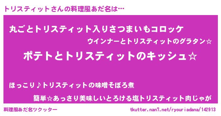 | 男性向けラノベタイトル風あだ名 | 『トリスティットの嫁は女の子じゃないと思った?』 |