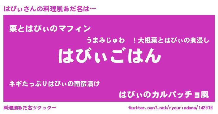 | 意味不明あだ名 | 『エリンギ科はびぃ属』『ペロリンはびぃ』 |
