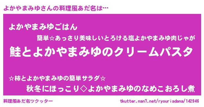 | 女子向けラノベタイトル風あだ名 | 『死神よかやまみゆの再婚』 |