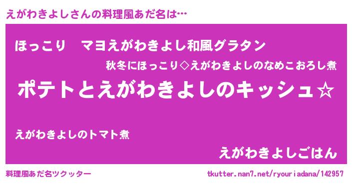 | 女子向けラノベタイトル風あだ名 | 『えがわきよしの卵を拾いまして』 |