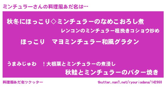 | 意味不明あだ名 | 『住所不定無職ミンチュラー(81歳)』 |