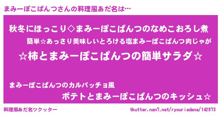 | 胡散臭い通販商品みたいなあだ名 | 『信頼と実績のネックレス…その名も「まみーぽこぱんつ」』 |