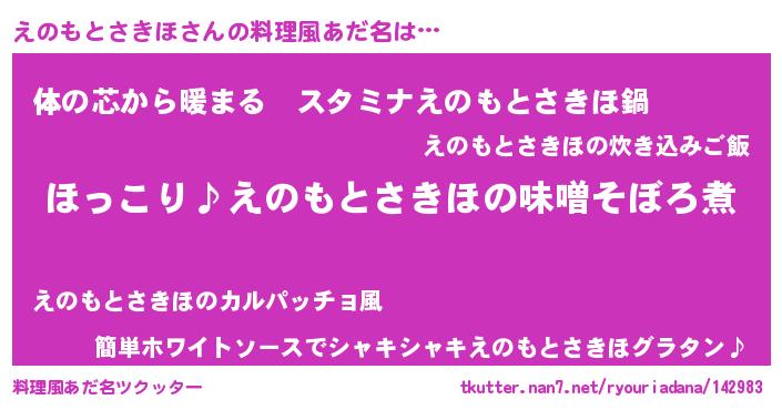 | 意味不明あだ名 | 『ペロリンえのもとさきほ』 |