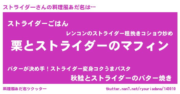 | 胡散臭い通販商品みたいなあだ名 | 『来世でも幸せになれる健康食品…その名も「ストライダー」』 |