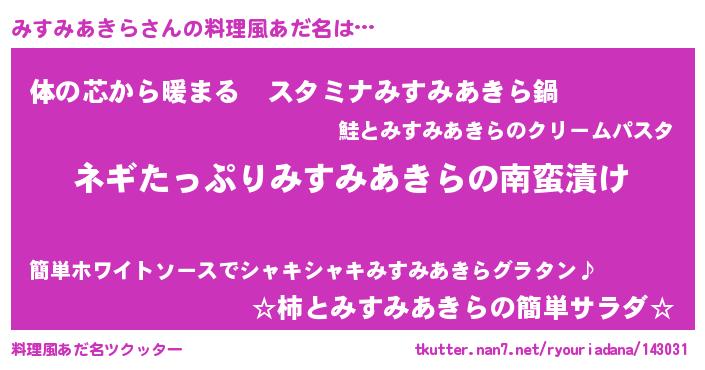 | 肩書あだ名 | 『みすみあきら社長』『みすみあきら艦長』 |