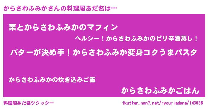 | 肩書あだ名 | 『からさわふみか教授』 |