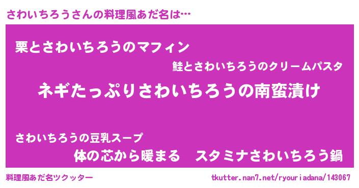 | 男性向けラノベタイトル風あだ名 | 『サワイチロウアートオンライン』 |