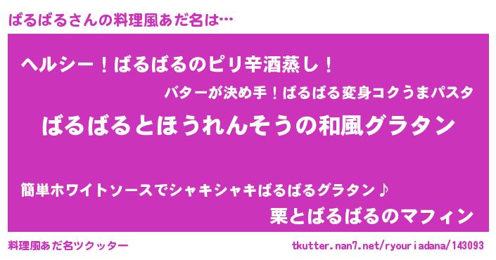 | 胡散臭い通販商品みたいなあだ名 | 『テレビで話題の高麗人参…その名も「ばるばる」』 |