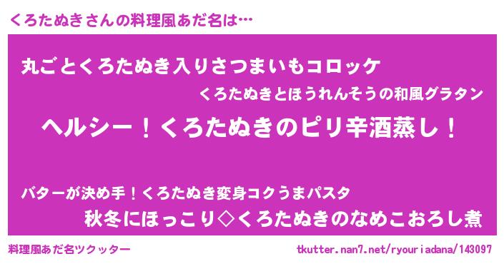 | 意味不明あだ名 | 『自称くろたぬき』 |