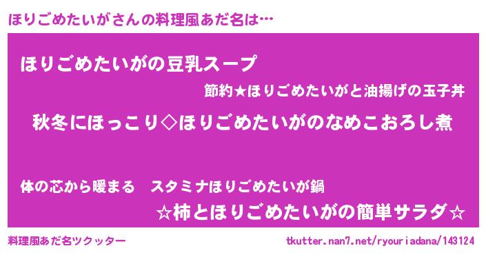 | 男性向けラノベタイトル風あだ名 | 『ほりごめたいがに滅ぼされるだけの簡単なお仕事です』 |