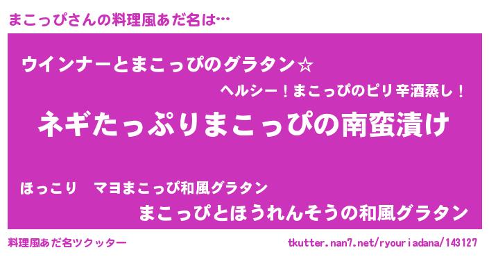 | ピコ太郎風あだ名 | 『マコ三郎』『ピマ三郎』『マコ一郎』 |