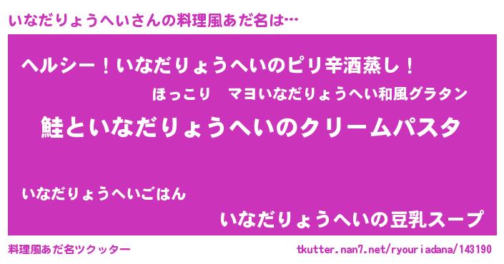 | ヘコむあだ名 | 『いな太郎』『いなだりょうへい(笑)』 |