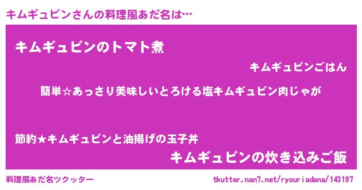 | ヘコむあだ名 | 『キムギュビン(笑)』『キムにゅー』 |