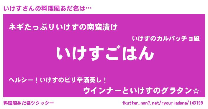 | 男性向けラノベタイトル風あだ名 | 『イケススレイヤー』『魔弾の王といけす』 |