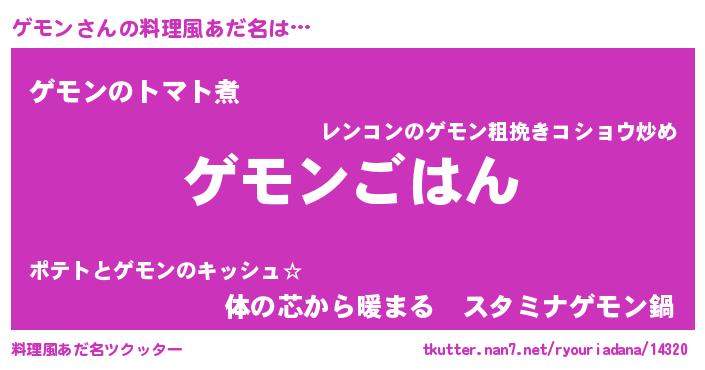 | 意味不明あだ名 | 『なめこ科ゲモン属』『自称ゲモン』 |