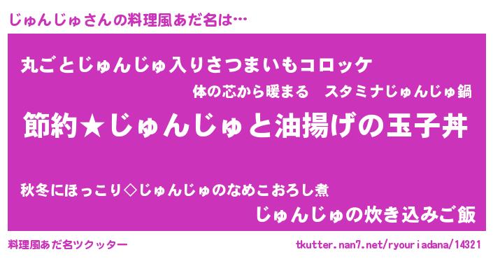 | 意味不明あだ名 | 『ペロリンじゅんじゅ』『自称じゅんじゅ』 |