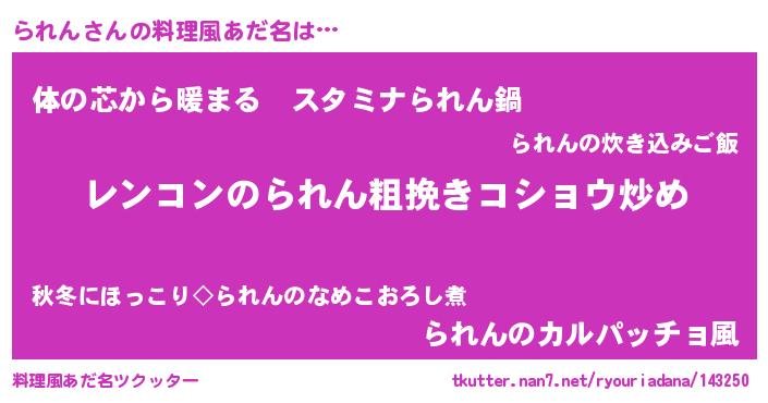 | 胡散臭い通販商品みたいなあだ名 | 『テレビで話題の高麗人参…その名も「られん」』 |