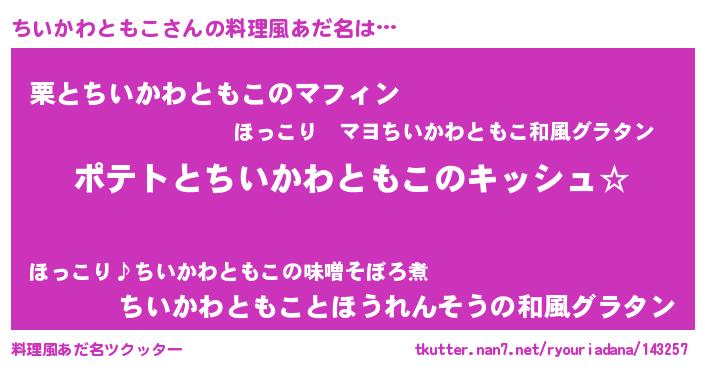 | ポケモン風あだ名 | 『ヒチイカワトモコ』『チイゴンZ』 |