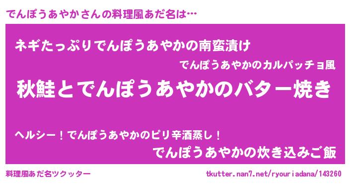 | ヘコむあだ名 | 『でんぽうあやか(笑)』『でんにー』 |