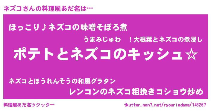 | ピコ太郎風あだ名 | 『ネズ四郎』『ネコ四郎』『ピネ太郎』 |