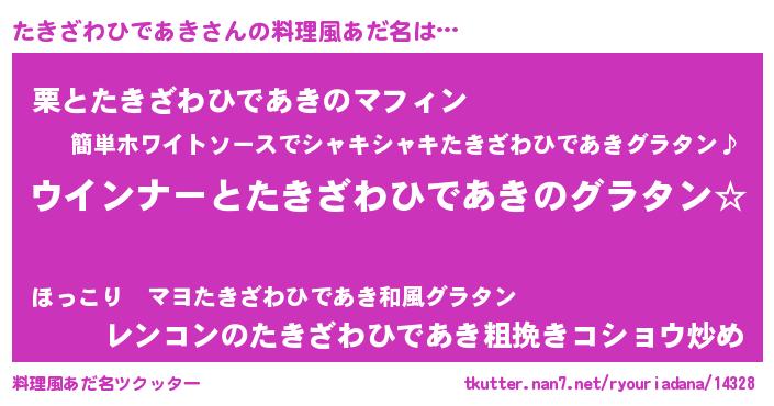 | 意味不明あだ名 | 『たきざわひであきフォーエバー』 |